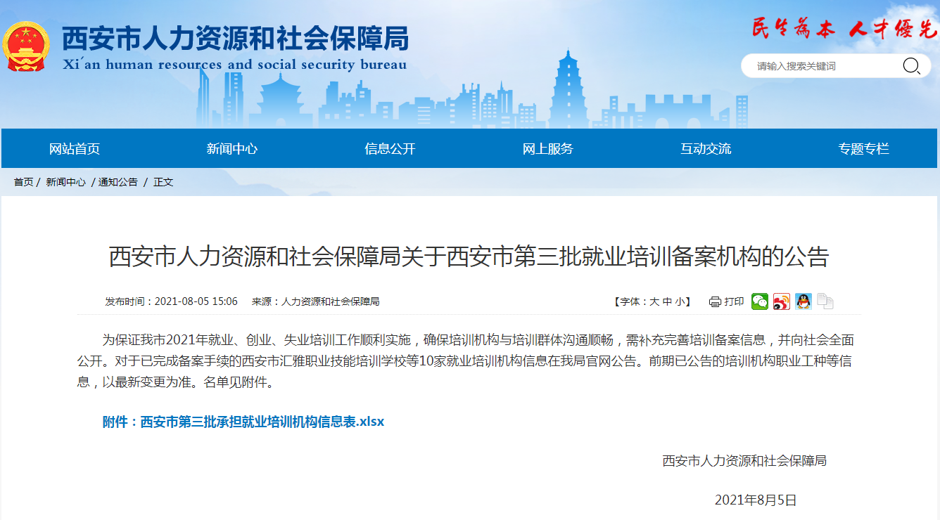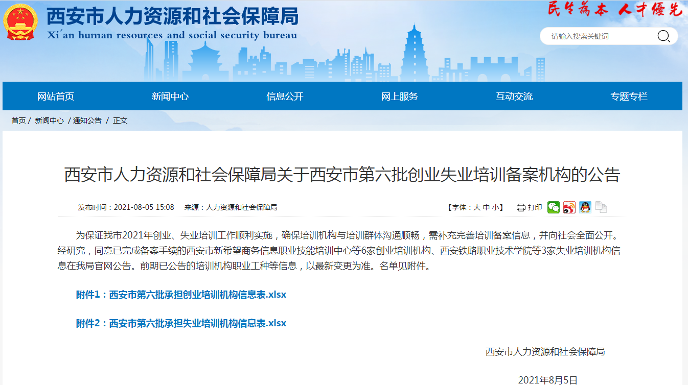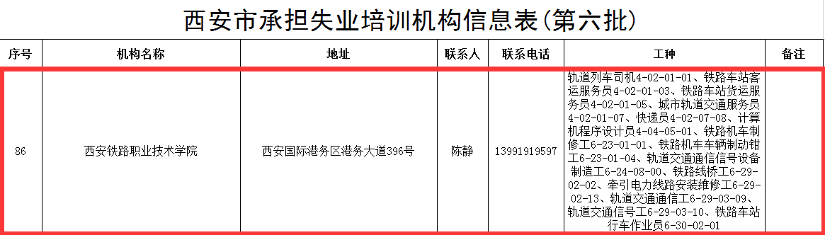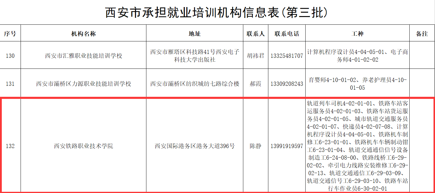 8月5日,西安市人力资源和社会保障局发布《西安市人力资源和社会保障局关于西安市第三批就业培训备案机构的公告》和《西安市人力资源和社会保障局关于西安市第六批创业失业培训备案机构的公告》,贝博官网成功获批就业、创业、失业培训机构。今后贝博官网将面向西安市各类群体开展创业培训和轨道列车司机、铁路车站客运服务员、计算机程序设计员、铁路线桥工等14个工种的就业失业培训。