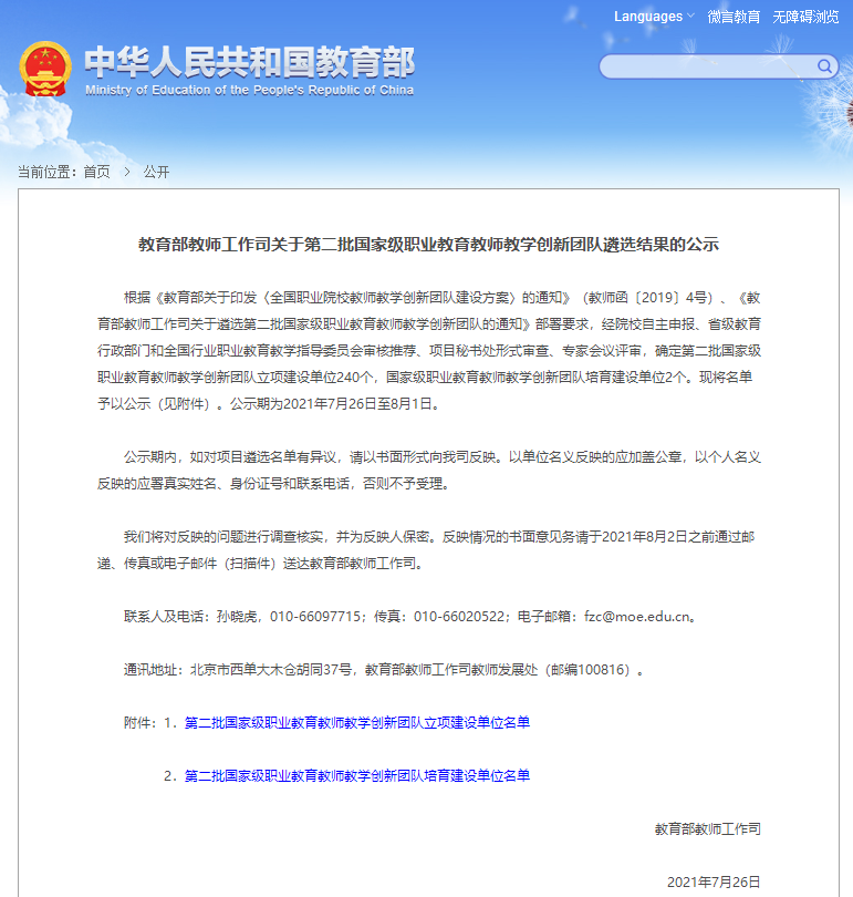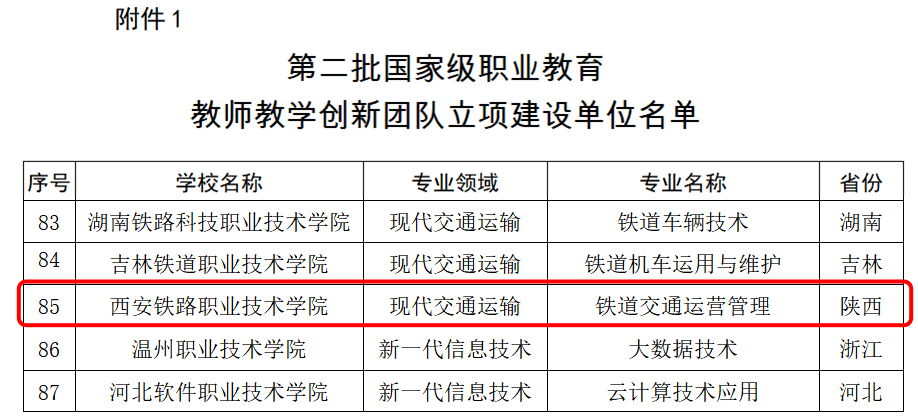 7月26日,教育部教师工作司就“第二批国家级职业教育教师教学创新团队遴选结果”进行公示。根据《教育部关于印发〈全国职业院校教师教学创新团队建设方案〉的通知》(教师函〔2019〕4号)、《教育部教师工作司关于遴选第二批国家级职业教育教师教学创新团队的通知》部署要求,经院校自主申报、省级教育行政部门和全国行业职业教育教学指导委员会审核推荐、项目秘书处形式审查、专家会议评审,贝博官网交通运输学院申报的铁道交通运营管理专业教学团队成功入选第二批国家级职业教育教师教学创新团队立项建设单位。