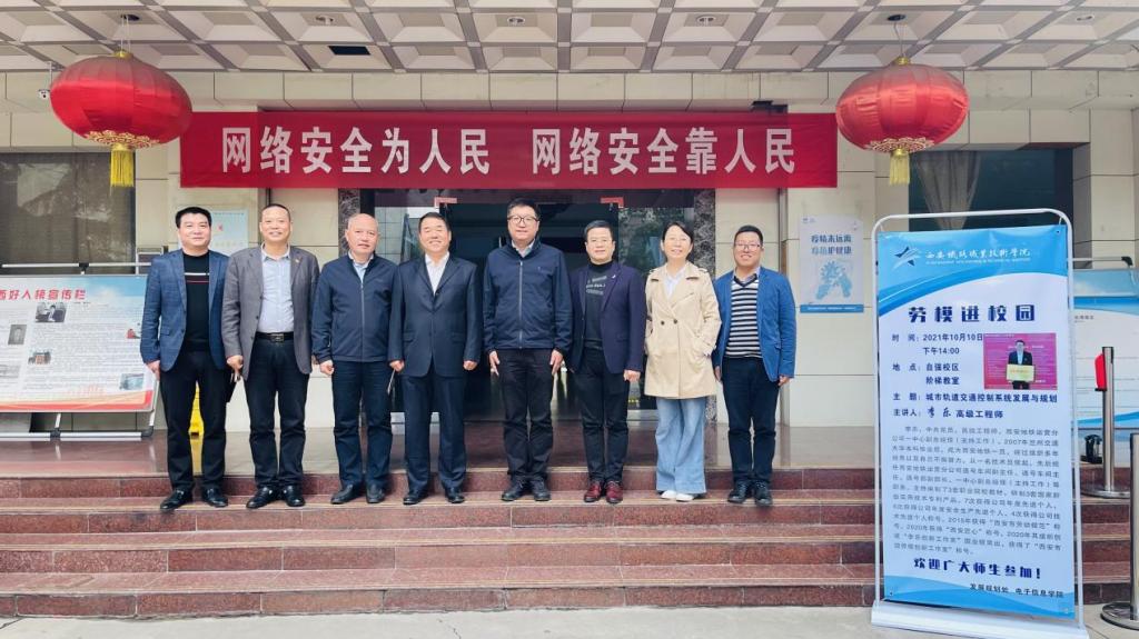 安学武代表学院为李乐颁发“产业导师”聘书,并为“李乐劳模创新工作室”揭牌,同时,李乐作为产业导师与城轨通号专业青年才俊、骨干教师王小可签订师徒协议。在随后的主旨报告中,李乐以“城市轨道交通控制系统发展与规划”为主题,从城市轨道交通开通运营现状、西安市轨道交通发展概况、信号系统的发展及其应用、城市轨道交通信号系统的未来、在校生职业规划等五个方面进行详细讲解。最后,他希望同学们一是要端正态度,坚持学习;二是要修身正心,完善品格;三是要有的放矢,知行合一;四要扎实学习专业知识,打好基础,树立正确的价值观,做好职业规划;五要勇于投身在轨道交通建设中来,对城轨交通行业的发展充满热情和信心。报告中,李乐向大家介绍了贝博官网在西安地铁入职的优秀校友王向、金帅、周辉等同学,激励了在场的每一位师生。