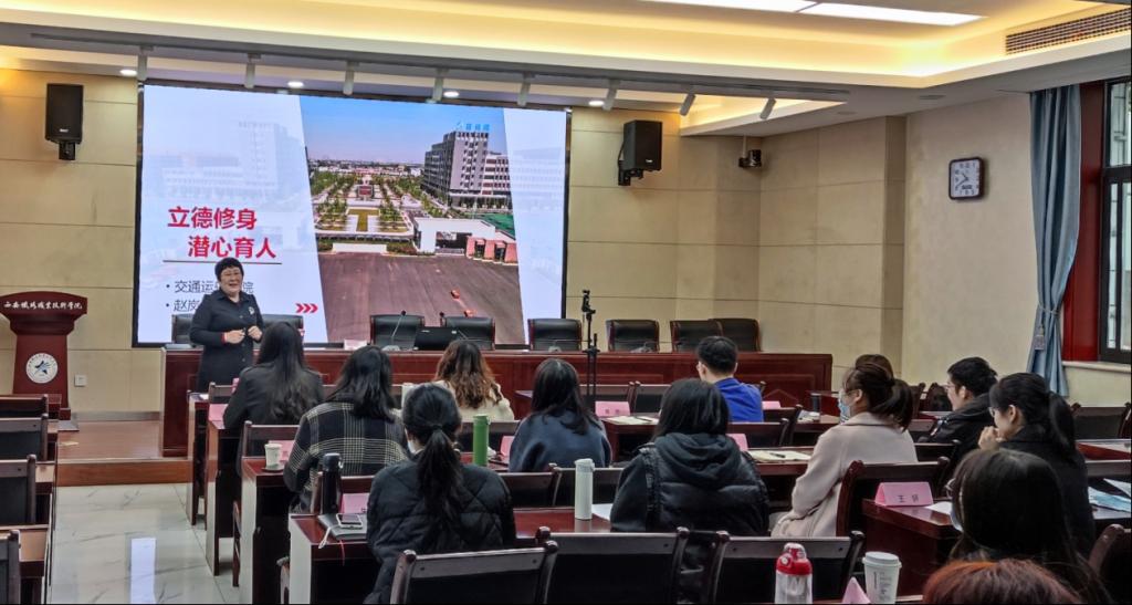 发展规划处处长马军强作了第一场讲座,他以《行政业务及行政人员素养》为题,从“行政”的含义、行政人员应具备的素养、自我价值的体现、自我定位等多个方面,详细介绍了做一名合格的行政人员应具备的能力和素养。人事处副处长喻朝晖从学院发展史、改革举措及发展目标出发,重点介绍了学院人事管理、职称晋升等相关制度及要求。发展规划处副处长张军以《职业教育与发展规划》为题,介绍了职业教育发展的现状与未来,重点讲解了学院“十四五规划”“双高”建设以及“提质培优”三年行动计划等重点规划项目的建设目标及重要意义。现代教育中心主任黄小明以《现代教育技术》为题,结合学院现代教育中心主要职能和信息化建设现状,讲解了现代教育技术手段、多媒体设备、校园网系统等多种资源的应用与操作方法。教务处处长滕勇以《教学业务与管理》为题,从教学管理运行机制出发,重点讲述了高职教育教学改革的新高度、新理念,对教育教学管理、教学业务的开展等制度、方法进行了详细说明。马克思主义学院院长景延鹏从当代年轻人应具备正确的爱国主义价值观出发,对课程思政的起因、教学理念、教学方法进行了详细讲述,最终形成思想政治理论教育与各类专业课程教育的协同效应。党政办公室副主任王树以《公文写作》为题,详细介绍了公文写作的基础理论与方法,用一个个工作生活的实际案例,生动阐述了国家规定公文写作的类型、要素、组成及规范等。交通运输学院赵岚教师从教书育人、关爱学生、爱岗敬业、廉洁自律等方面强调教师师德规范、职业素质、爱岗敬业、无私奉献的重要意义,并以身作则,通过身边的一个个小故事,展现了一名师德高尚教师的光辉形象。交通运输学院史歌教师以“为人师表,从礼开始”为核心,介绍了一名合格教师须具备的仪容仪表、仪态礼仪、交往礼仪、沟通礼仪等教学礼仪规范。