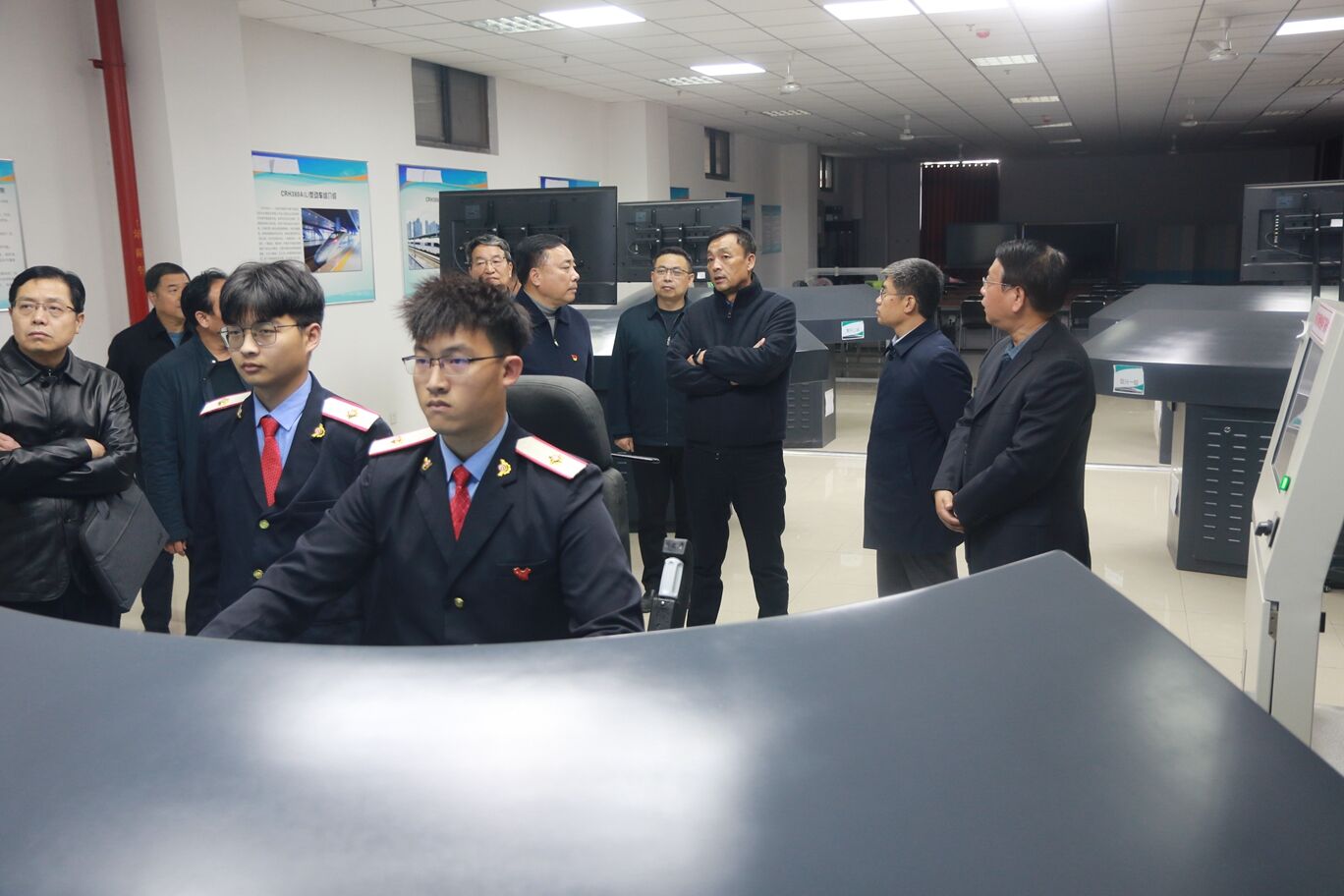 12月1日下午,中国铁路西安局集团有限公司党委书记、董事长张海涛一行来贝博官网调研指导工作。学院领导班子陪同调研。