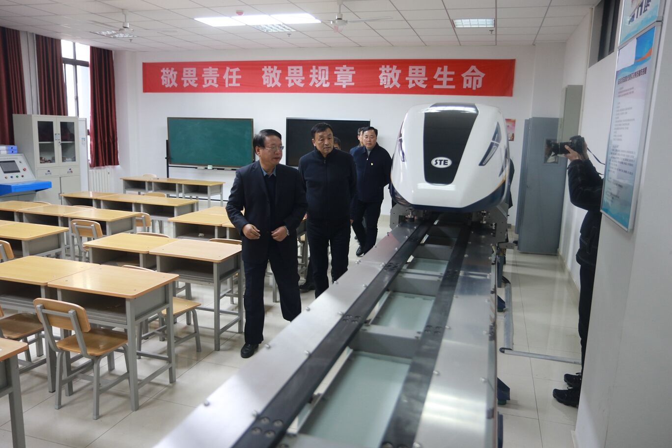 随后,张海涛一行在牵引动力学院相关实训室、学院轨道交通专业综合演练场,对学生的课堂教学、实训实习、招生就业、专业建设等方面工作进行了深入调研。