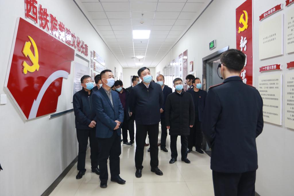杨东明一行先后参观了学生公寓、红色文化教育实践基地、牵引动力学院相关实验实训室、思政文化教育实践基地和轨道交通综合演练场,实地了解学院学生管理、教学实训和党建思政育人等方面情况。