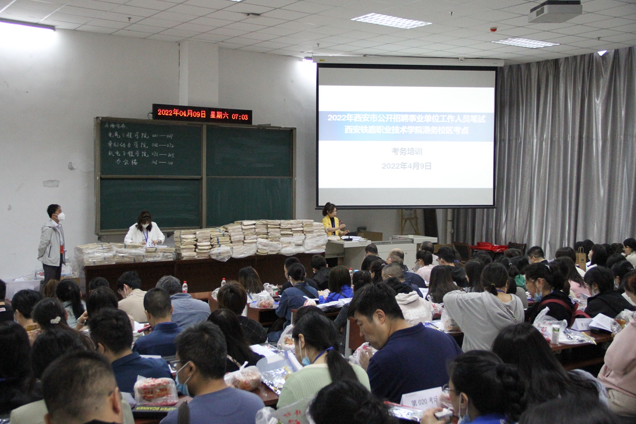 受西安市人事考试中心委托,贝博官网于4月9日在港务校区承办了“2022年西安市公开招聘事业单位工作人员笔试”考试。作为西安市主要考点之一,贝博官网承接了110个考场的笔试工作任务,共有3300名考生参加本次考试。