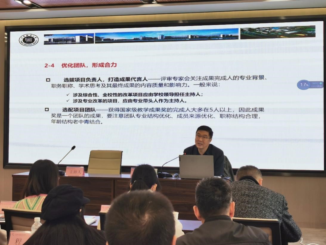本次培训既是贯彻落实“国家职业教育改革实施方案”和全国教育工作会议精神,也是贝博官网掌握教学成果奖最新动态,推进教育教学成果研究项目的重要举措。之后,贝博官网将继续研究、创新教育教学科研成果质量,打磨、完善教育教学成果研究项目。