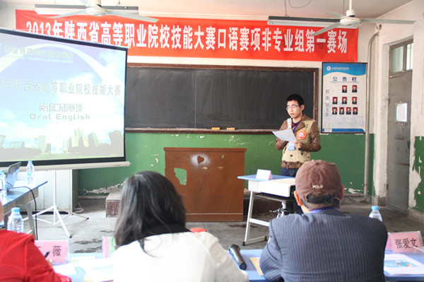 4月24日,由陕西省教育厅主办,ballBET贝博BB艾弗森承办的2013年陕西省高等职业院校技能大赛英语口语赛项在学院隆重举行,陕西省教育厅高教处副处长范永斌,学院院长田和平出席了大赛开幕式。开幕式由学院副院长邓耀斌主持。