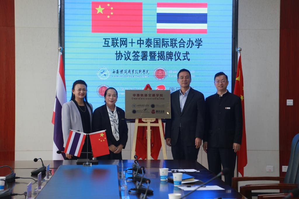10月15日,“互联网+中泰轨道交通学院”在我院举行揭牌仪式。“互联网+中泰轨道交通学院”集中泰合作开展留学生学历培养、境外办学、课程共建、师资培训等多种形式于一体,为泰方培养既熟悉中国传统文化,又适应本土轨道交通亟需技能人才