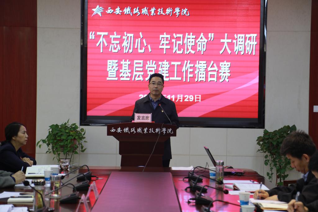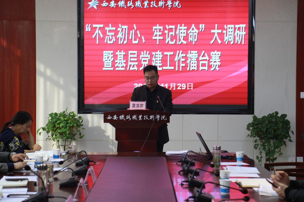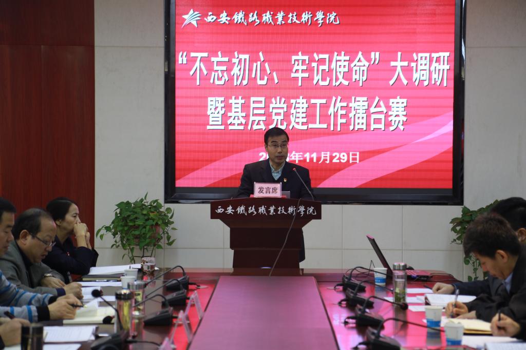为深入学习贯彻党的十九大精神和习近平新时代中国特色社会主义思想,扎实推进学院基层党组织建设,确保基层党建各项工作任务落地见效。2018年11月29日上午ballBET贝博BB艾弗森举办了全院“不忘初心、牢记使命”大调研暨基层党建工作擂台赛,对学院2018年度基层党组织党建工作进行述职评议考核。学院院长田和平,党委副书记邓耀斌,党委副书记、纪委书记黄家昌,副院长安学武,学院党委办公室、组织部、宣传部、纪委、学生工作部、工会、团委负责人,各党总支书记以及党员、群众代表共43人参加。擂台赛由院党委副书记邓耀斌同志主持。