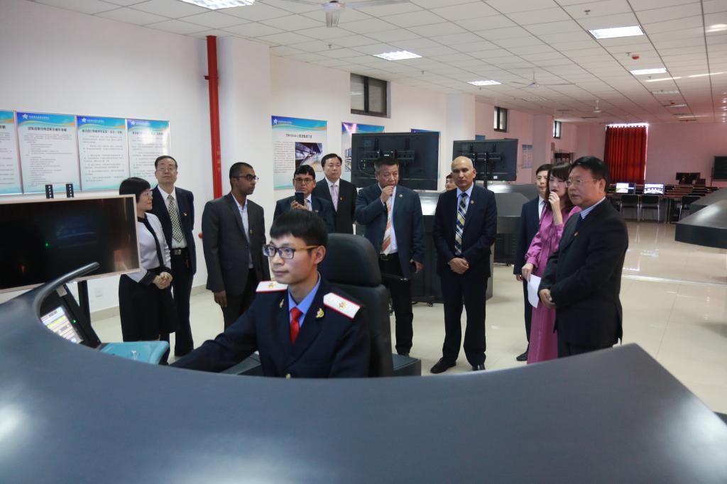 学院党委书记施利民、院长田和平、副院长赵六杰及有关职能部门负责人在牵引动力学院楼前迎接。在简短介绍了学院的基本情况后,学院领导陪同妣湿奴·鲍德尔总书记一行系统考察了“HXD3机车仿真驾驶实训室”“JZD-D型组合式机车轮对磁粉探伤实训室”“CCB-II型电控制动机实训室”“动车组驾驶暨牵引传动实训中心”“城轨车辆牵引与制动实训中心”等。