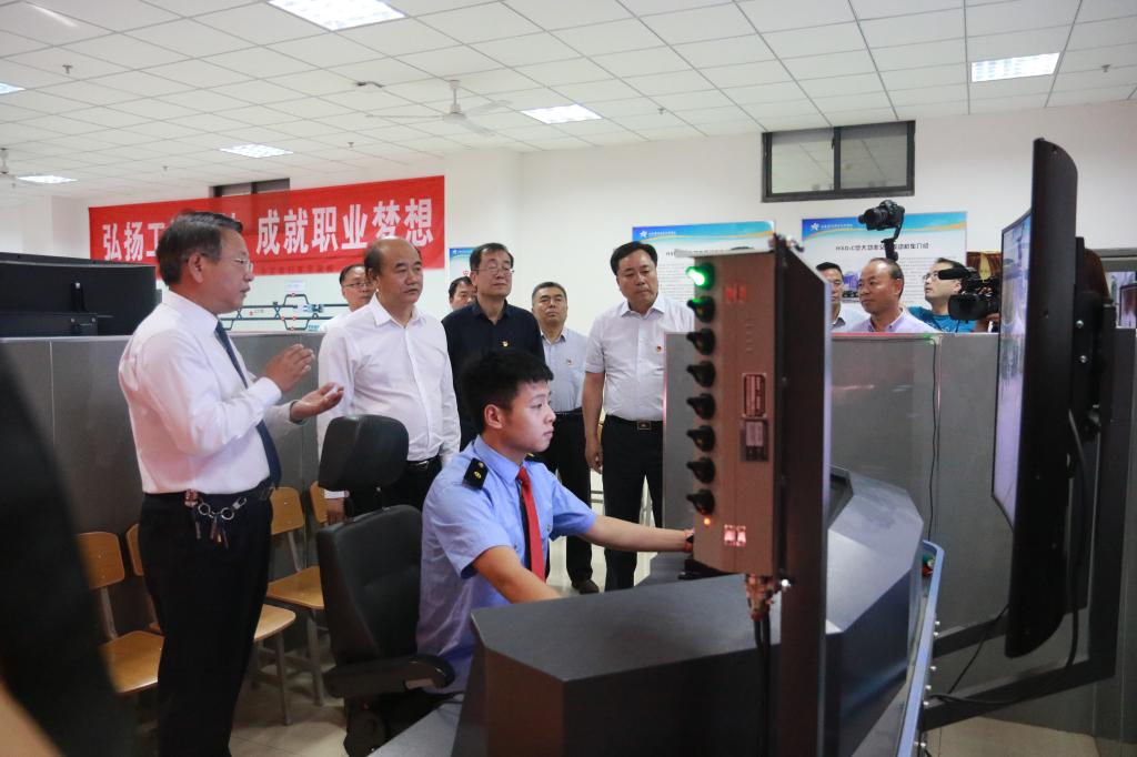 刘建林一行实地考察了学校牵引动力学院实训基地和国际交通学院国际交流中心,观看了学生实训演练,听取了关于二级学院实验实训室建设和技能大赛等方面情况介绍。随后召开座谈会,会议由学校党委书记施利民主持。