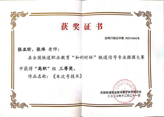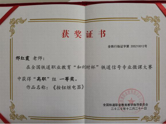 由全国铁道职业教育教学指导委员会主办,铁道通信信号专业教学指导委员会承办的首届“和利时杯”铁道信号专业微课大赛于12月11日圆满落幕!贝博官网参赛队伍喜获佳绩,共4项作品获奖,期中一等奖1项,二等奖2项,三等奖1项。是贝博官网教师在2020年又一次获得的国家级奖项。