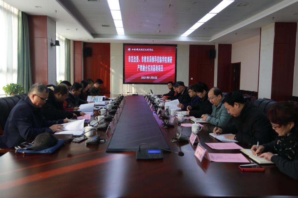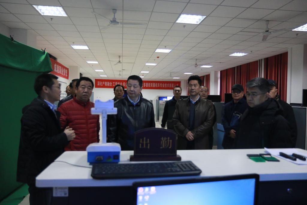 1月5日上午,西安市发改委副主任冉红斌、社会处处长王晴、二级调研员秦剑、四级调研员郭昌生、行政审批处项目主管李晗、西安市教育局发展规划处处长张斌、发展规划处总工丁涛等一行7人来贝博官网调研产教融合实训基地项目。
