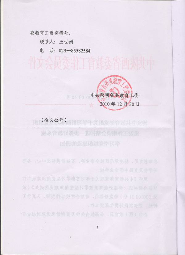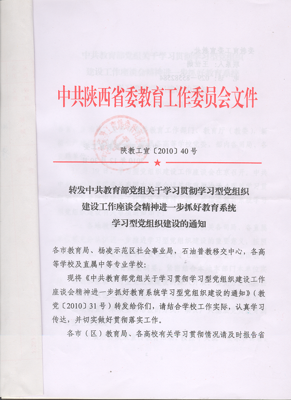 现将陕西省委教育工委陕教工宣〔2010〕40号文件的通知转发给你们,请结合工作实际认真学习,并切实做好贯彻落实工作。