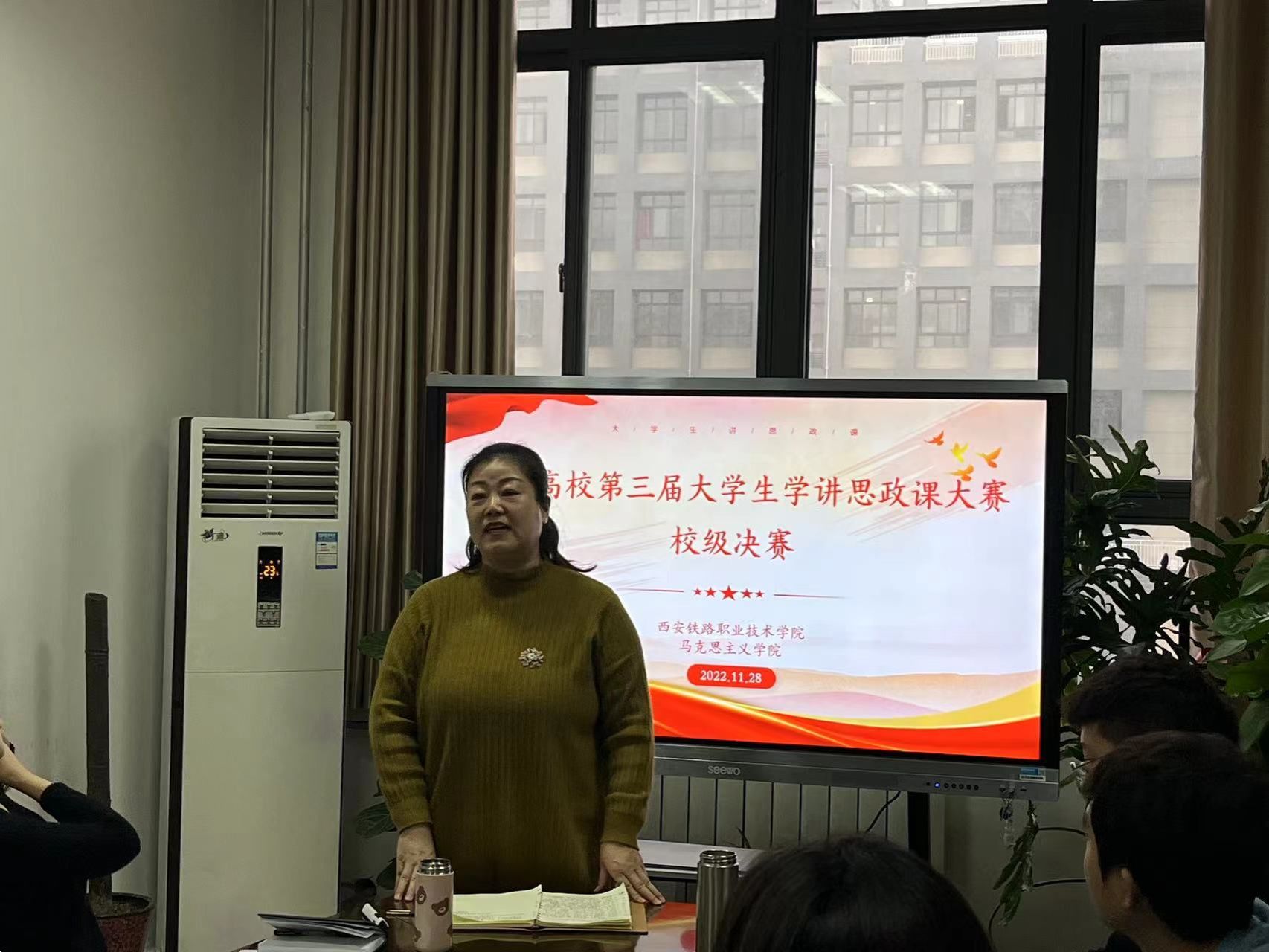 比赛结束后,马克思主义学院办公室主任赵建英、毛特概论与形策教研室主任邢卫红对选手进行点评。两位评委对各位选手的表现给予充分的肯定,从作品主题、理论内涵、现场表现等方面进行一一点评。