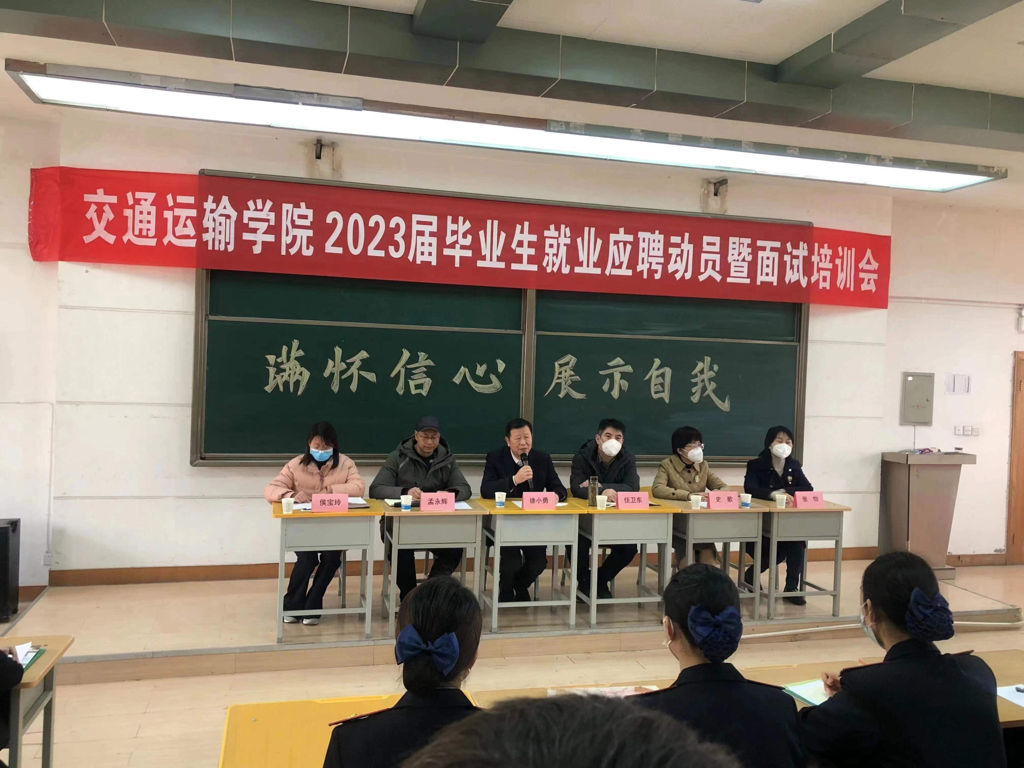为认真贯彻党的二十大精神,加强对毕业生就业的指导与帮扶,进一步提升学院毕业生就业质量,助力2023届毕业生就业工作的顺利开展,交通运输学院于2月5日上午9点在龙首校区6号楼阶梯教室分批次召开了2023届毕业生就业应聘动员暨面试培训会。参加会议的有交通运输学院院长徐小勇、党总支书记任卫东、学工办主任孟永辉、高乘教研室专业老师史歌和张怡、就业工作专项辅导员侯宝玲,会议由孟永辉主持。