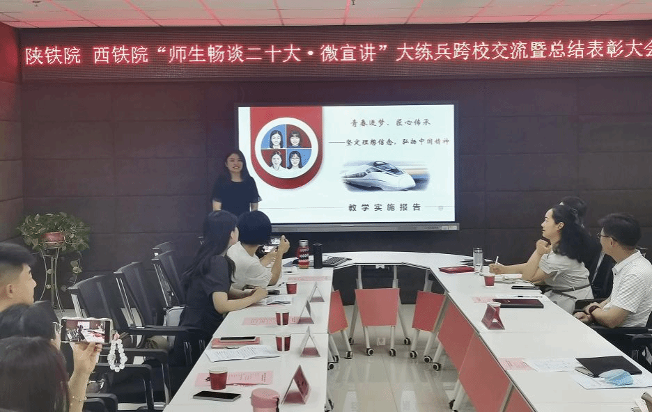 进入跨校交流环节,贝博官网教师、2017年教育部高职高专思政课教学标兵焦雯、2023年陕西省高校思政课教学标兵张杰,2023西安市“第三届市属高校大学生讲思政课”获奖学生胡一匡分别向陕铁院马院教师进行了陕西省高职院校教学能力大赛教学实施报告、陕西省高校思政教师“大练兵”活动和第三届市属高校大学生讲思政课比赛获奖作品展示。