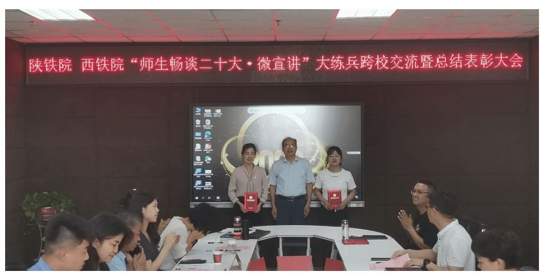 活动开始,首先进行的是颁奖环节。由陕铁院党委副书记、纪委书记黎炜、景延鹏和陕铁院马院院长李新萍为6月8日陕铁院“师生畅谈二十大·微宣讲”大练兵活动获奖教师颁发荣誉证书并合影留念。