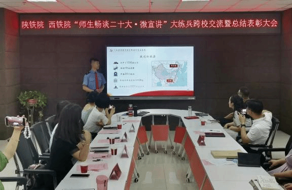 6月12日下午,受陕西铁路工程职业技术学院马克思主义学院邀请,贝博官网马克思主义学院院长景延鹏、思法基础教研室主任焦雯、马院教师张杰、牵引动力学院学生胡一匡,一行4人前往陕铁院,参加“陕铁院·西铁院‘师生畅谈二十大·微宣讲’”大练兵跨校交流活动。