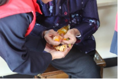 自古重阳节有吃重阳糕的风俗。“高”和“糕”谐音,作为节日食品,最早是庆祝秋粮丰收、喜尝新粮的用意,之后民间才有了登高吃糕,取步步登高的吉祥之意。这次同学们也特地准备了重阳糕,师生同品传统美食。