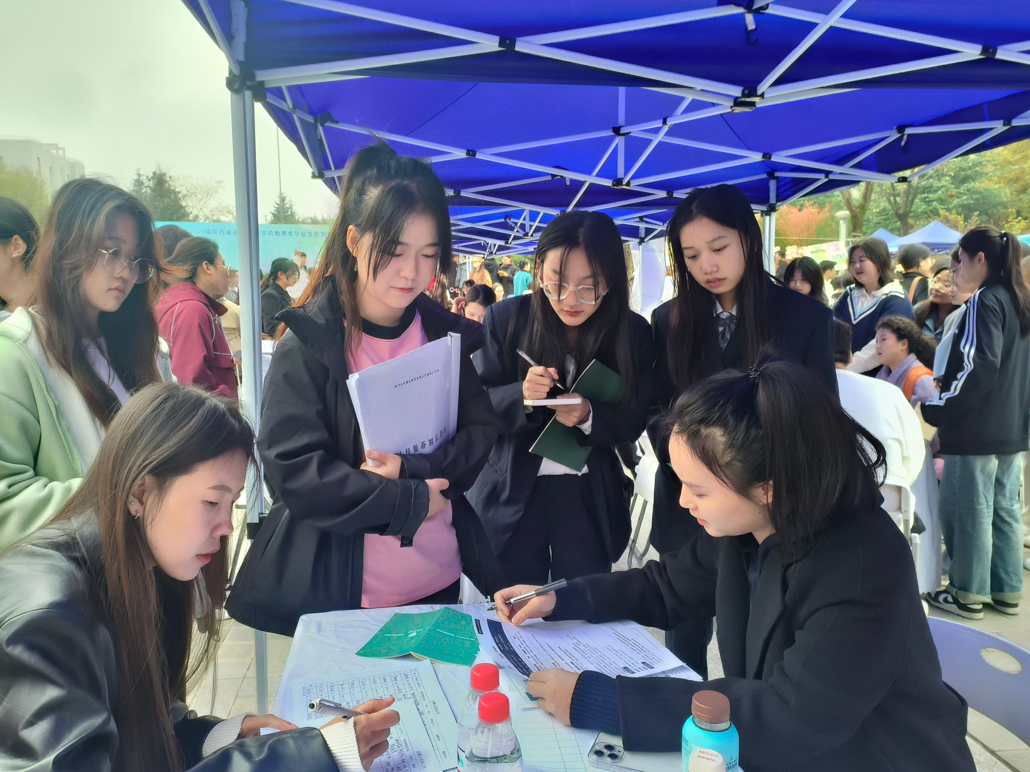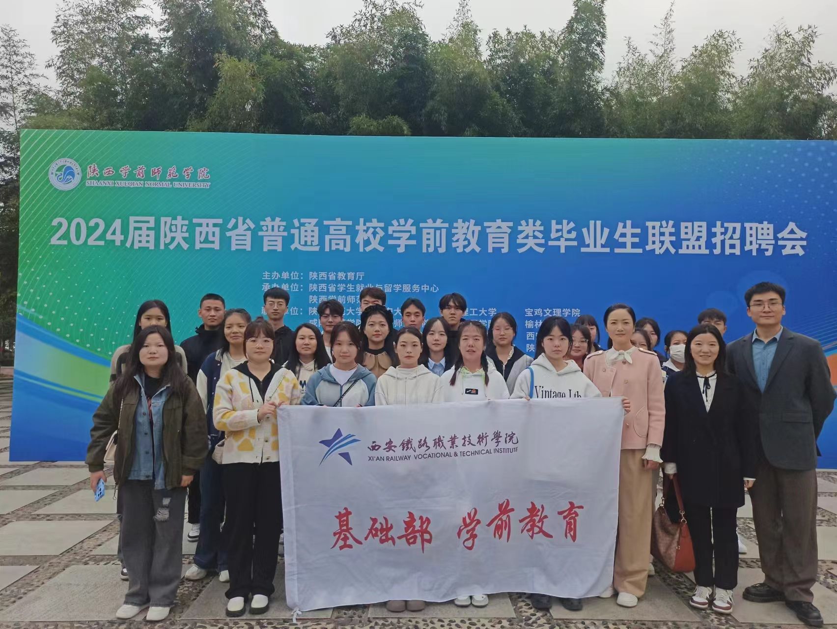 11月4日,“2024届陕西省普通高校学前教育类毕业生联盟招聘会”在陕西学前师范学院(长安校区)举办。为了解用人单位最新需求,做好就业前期准备工作,学院基础部副主任张博雅,学工办主任李璇及年级辅导员田若涵组织部分学生赴陕西学前师范学院参加本次双选会。