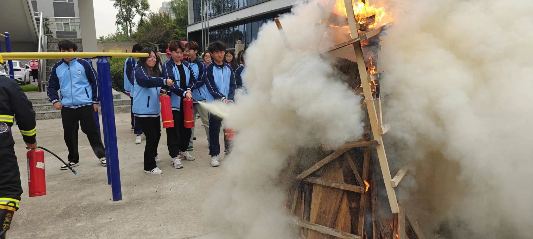 随后进行应急演练。活动现场模拟“起火”,师生员工在宋磊的指导下,逐一实践灭火器的使用方法,包括拔保险栓、对准火源根部规范喷洒等细节。