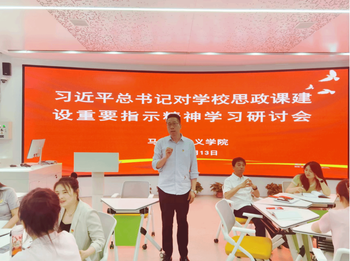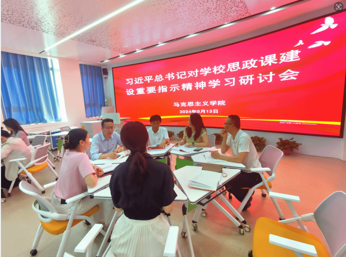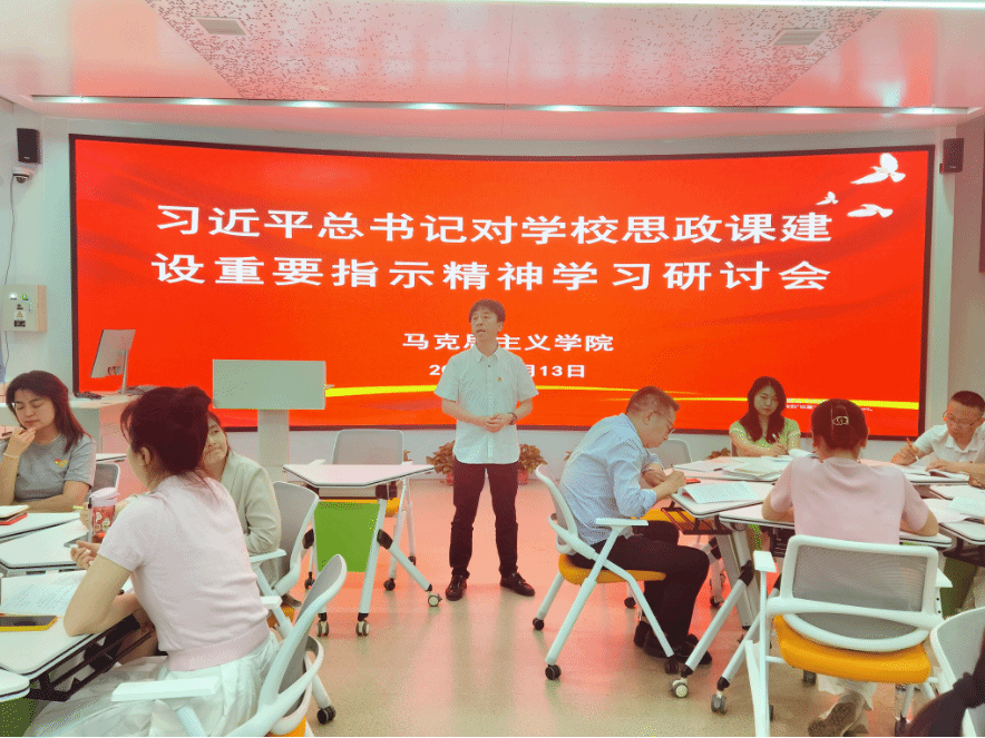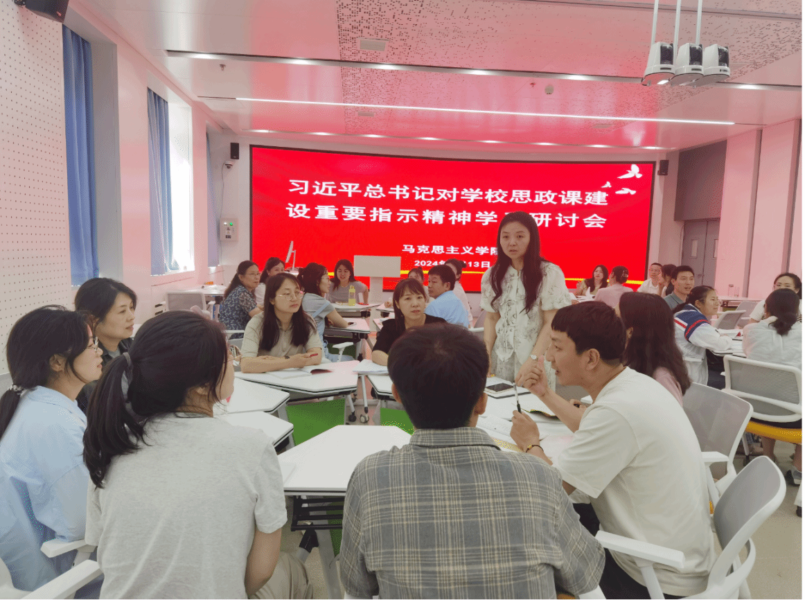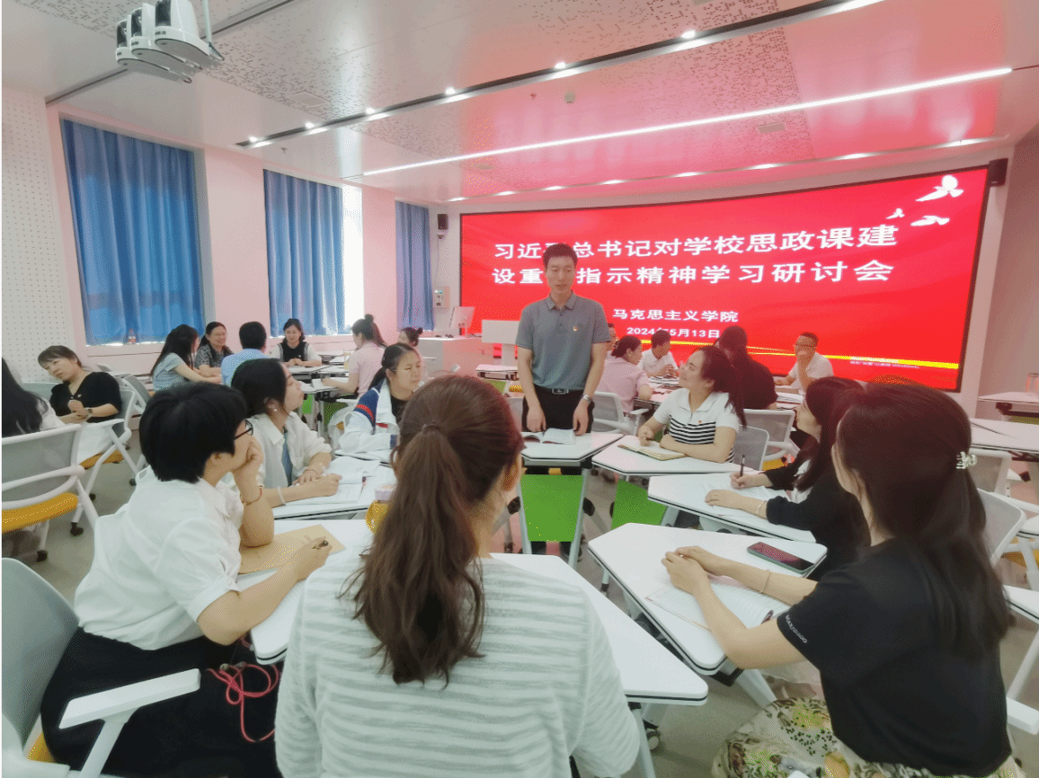 贯彻新指示,当好引路人。学习动员之后,全体教师以教研室为单位进行广泛交流研讨,大家纷纷表示,自己深受鼓舞,深感使命在肩、责任重大,习近平总书记重要指示为新时代思政课建设守正创新指明了方向,一定认真学习习近平总书记重要指示精神,完整、准确、全面把握各项工作要求,不断学习新知识、熟悉新领域、开拓新视野,把道理讲深讲透讲活,提高思政课的针对性和吸引力,以实际行动回答“为谁培养人、培养什么人、怎样培养人”的问题,当好学生引路人,培养更多让党放心、爱国奉献、担当民族复兴重任的时代新人。