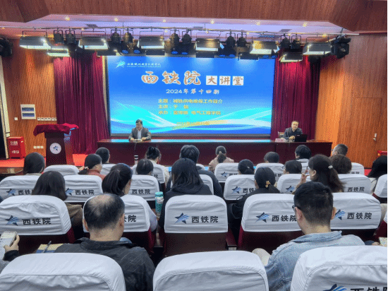 10月23日,由党委宣传部和电气工程学院主办的“西铁院大讲堂”在一楼报告厅开讲,本次大讲堂活动邀请了西安市轨道交通集团有限公司运营分公司工电维保部副经理于勉为师生作《城轨供电维保工作的简介》的主题报告。电气工程学院党总支书记喻朝晖、副院长宋永兴以及电气工程学院全体教职工和学生代表200余人参加了报告会。报告会由电气工程学院副院长宋永兴主持。