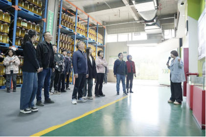 随后,叶夏云陪同学院一行参观了爱菊集团油脂车间、爱菊研学体验中心、产品展示馆和党建文化长廊,共同重温了爱菊的发展历程、感受了爱菊人的奋斗故事。