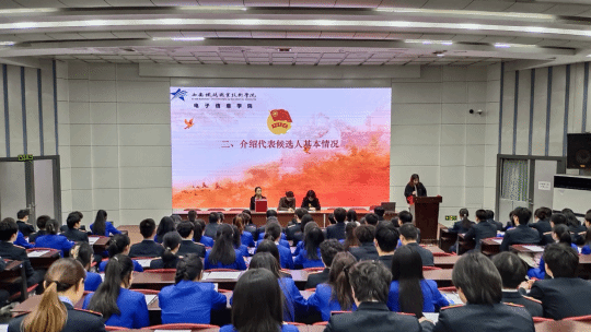 为切实加强贝博官网团组织建设,不断激发青年模范先锋作用,充分发挥广大团员学生主力军作用,促进学校的进步与发展,11月,电子信息学院共青团第二次代表大会代表候选人选举大会在自强校区阶梯教室顺利召开。本次会议由团总支书记姚景妍主持。