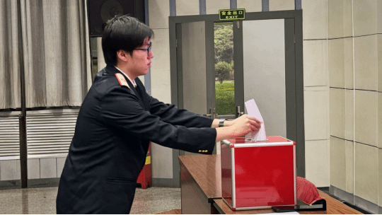 第四项投票选举代表。本次大会选举工作坚持民主集中制的原则,履行公正,公开,透明的原则。几分钟的等待后,主持人请团员代表们从第一排开始有序投票进入票箱。