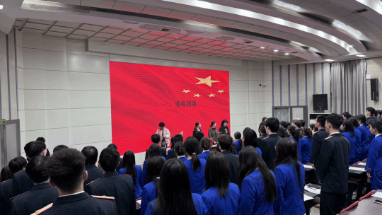 本次共青团代表大会主要分为五项议程。第一项奏唱国歌。大会在庄严肃穆的国歌声中拉开帷幕,全体师生肃然起立,唱响国歌。主持人姚景妍介绍了出席大会的领导并宣布大会正式开始。