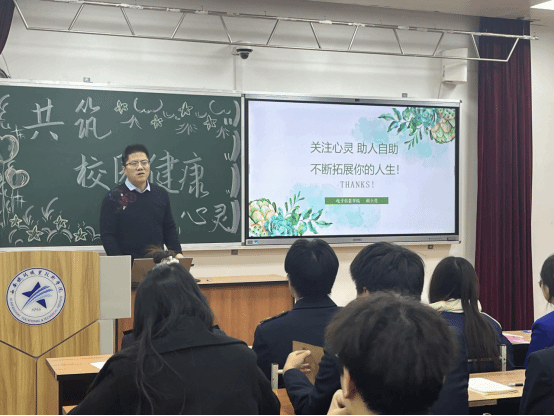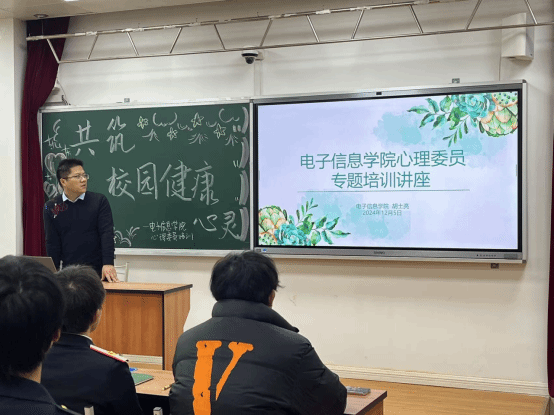 为进一步普及心理健康知识,增进心理委员对其工作的了解,发挥在心理育人和心理危机干预中的作用,构建坚固而细密的心理防护网,共筑校园健康心灵,12月5日下午电子信息学院辅导员国家二级心理咨询师胡士亮在教学楼407开展了以“共筑校园健康心灵”为主题的心理委员培训讲座。