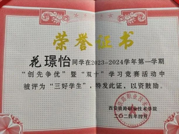 花璟怡,土木工程学院工程造价专业2301班学生,共青团员。在校期间刻苦学习,上一学年个人成绩专业第三,同时担任班级团支书,学生会综合部副部长。荣获国家励志奖学金、三好学生、年级学习标兵、优秀共青团员干部等荣誉称号。在努力学习的同时积极组织参与学院开展的各类校园活动与志愿服务活动,提升自我综合素质。