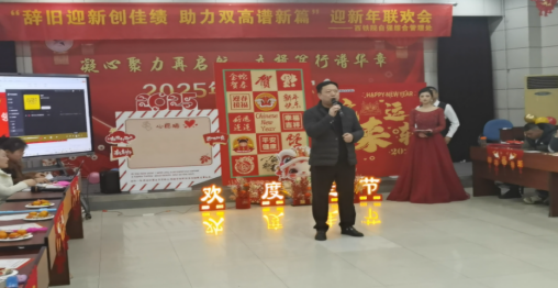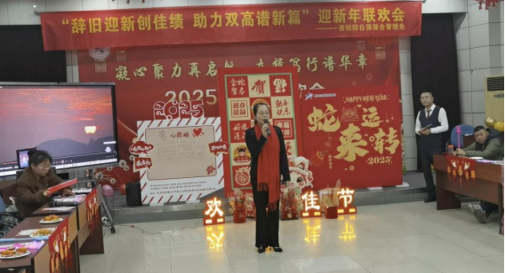 日月其迈,时盛岁新。1月8日下午,自强综合管理处在自强校区大电教隆重举行“辞旧迎新创佳绩 助力双高谱新篇”2025年迎新年联欢会。学院工会主席赵西平、自强综合管理处全体教职工及自强校区各部门代表等齐聚一堂,辞别旧岁,共迎新春。