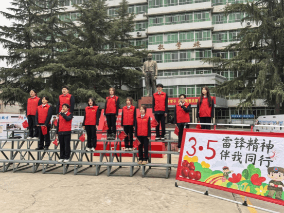 活动伊始,团总支社联部与学生会文艺部的同学们身着统一服装,手持鲜艳的五星红旗,用深情的歌声唱响了《我和我的祖国》与《学习雷锋好榜样》,他们用一种全新的方式致敬雷锋,领唱同学富有感染力的嗓音,将歌曲中对雷锋同志的赞美与敬仰之情展现得淋漓尽致;合唱部分,同学们整齐划一的和声,气势磅礴,铿锵的旋律点燃了现场热情,传递出新时代青年对雷锋精神的传承与弘扬。