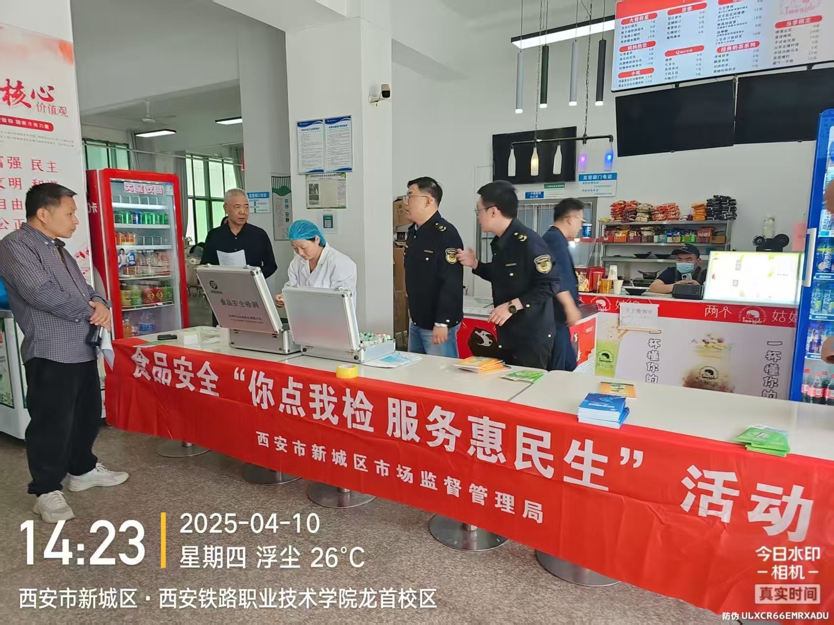 为进一步加强校园食品安全监管,保障师生饮食安全,4月10日,自强综合管理处(龙首校区)邀请自强路市场监督管理所副所长李明等一行4人,进校开展食品安全“你点我检,服务惠民生” 活动。