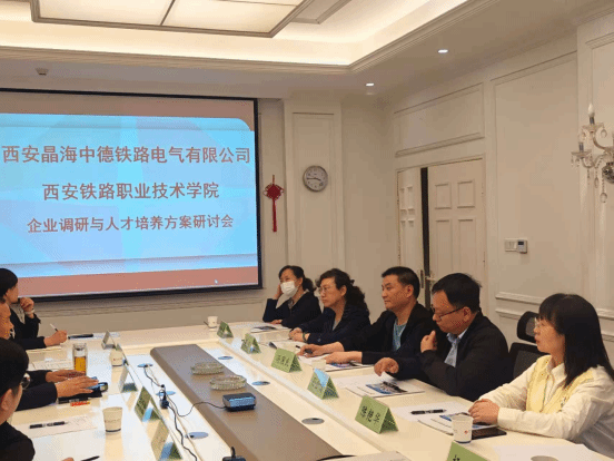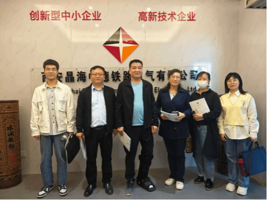 为深化产教融合,促进校企协同育人,4月21日下午,电子信息学院副院长冯国良带领高玉、邢红霞、孙会儒、陈艳华、杨伟康等信号教研室教师一行,前往西安晶海中德铁路电气有限公司开展访企拓岗专项调研活动。公司总经理,总工程师王荣勃,财务总监王小娜,销售经理李璐,销售部办公室主任韩洋,易通行政人事部长高璐,晶海行政人事部长白亮峰,副部长蔡莹等部门负责人热情接待了调研团队。