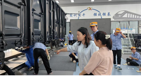 技能观摩,精准答疑解惑。为检验学生实习成果,教师团队现场观摩了学生车辆检修、故障排查等实操环节。学生们以严谨的态度和熟练的技能完成作业,展现出良好的职业素养。观摩结束后,教师们针对学生提出的技术难题,如转向架检修要点、制动系统故障分析等,进行了详细解答,并就行业新技术、新标准展开拓展讲解。郝磊老师表示:“通过观摩,我们看到了学生在实践中快速成长,也感受到校企联合培养模式的显著成效。”