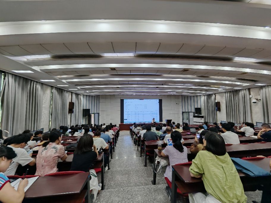 培训会邀请超星公司张柳洋老师细致全面的介绍了智慧课堂的各个功能,包括课程创建、题库建设、试卷组建、知识图谱、课件上传以及学生学情智能分析、学生画像等功能。台下各位老师认真倾听,现场学习操作。