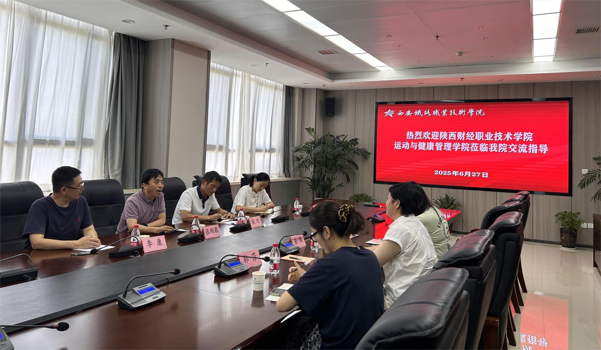 6月27日,陕西财经职业技术学院运动与健康管理学院院长岳荣一行莅临贝博官网,就学校体育工作开展交流指导。贝博官网教务处处长张刚毅、基础部相关人员出席座谈会并参与交流。