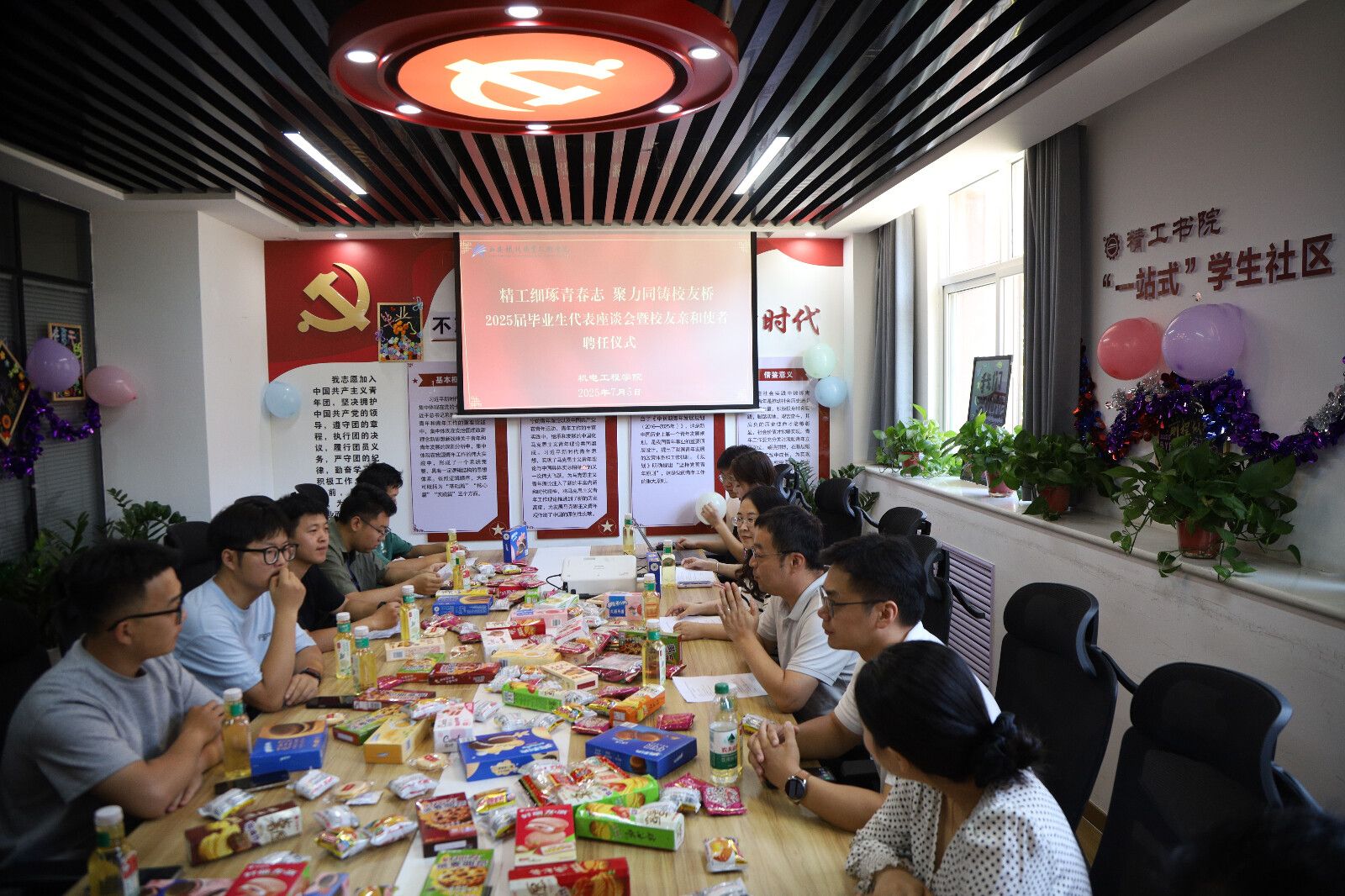 为进一步扎实推进毕业生离校教育工作,加强校友联络体系建设,7月5日,机电工程学院举行精工细琢青春志,聚力同铸校友桥——“2025届毕业生代表座谈会暨校友亲和使者聘任仪式”。毕业生代表实习归来话成长,分享实践淬炼的蜕变历程,感恩学院平台赋能与师长栽培,以职场新人的视角为母校发展献上祝福。老师们向毕业生代表颁发了“2025届校友亲和使者聘书”,赠予大家定制毕业纪念品,希望同学们始终践行“尚德、守则、强能、笃行”的校训精神,以使者身份搭建校友与母校的桥梁,在各自岗位上展现西铁人的担当,共同谱写学院发展新篇章。