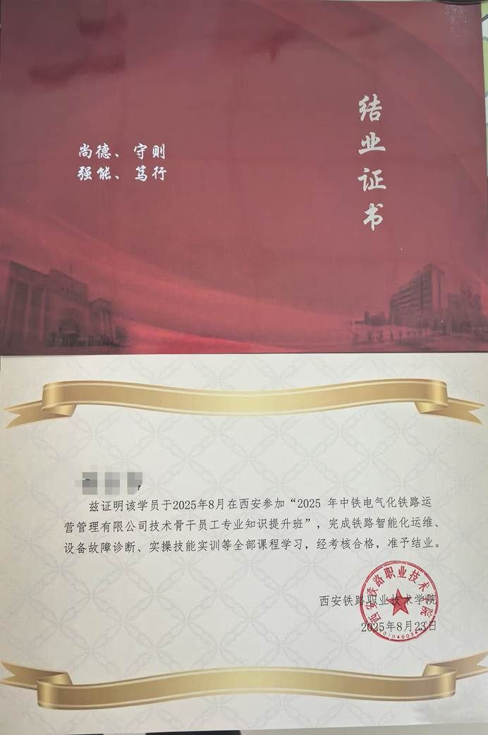 经过5天的系统学习,学员们表示收获颇丰,不仅更新了专业知识体系,还掌握了实用的工作方法与技巧,对未来更好地开展铁路电气化相关工作充满信心。此次培训为南京、徐州维管段的技术骨干队伍注入新活力,将有力推动公司铁路电气化运营管理工作迈向新高度,为铁路事业发展贡献更大力量。