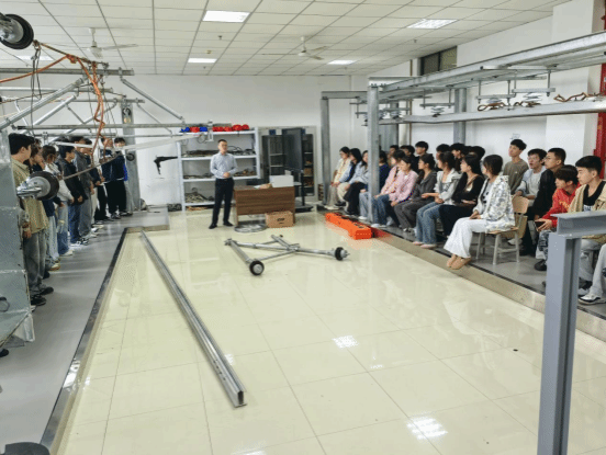 参观过程中,同学们专注聆听,不时停下脚步仔细观察设备,还积极向学长学姐提问,共同探讨专业学习与科创实践的方法。这种跨年级的交流,不仅拉近了同学们之间的距离,让新生真切感受专业与科创的魅力,更让大一的同学们在学长学姐身上看到了奋进的榜样,坚定了努力学习、投身科创的决心。