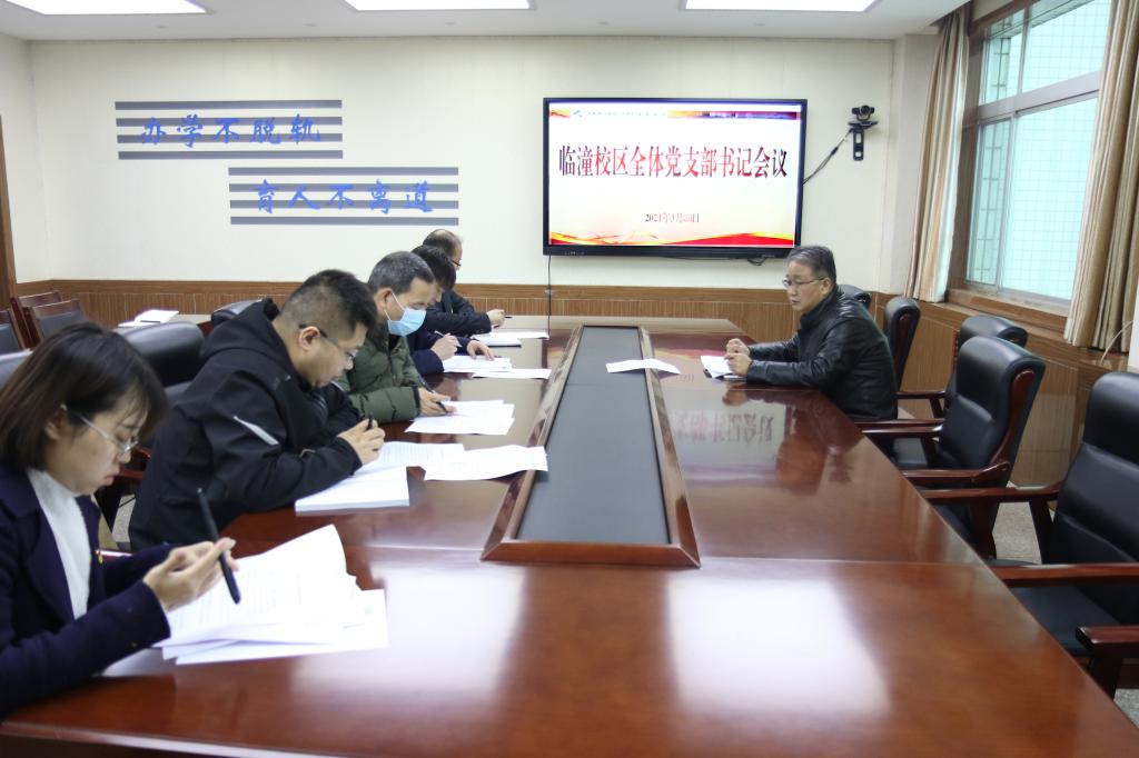 3月24日,临潼校区召开了党史学习教育动员会与工作部署会,对校区开展党史学习教育进行动员和部署,张国邦书记作动员讲话。会议上共同学习了习近平总书记在党史学习教育动员大会上的重要讲话精神,传达学习了中央、省、市、学院党委的党史学习教育会议精神,阐明了党史学习教育的重点和工作要求,对党史学习教育进行了全面动员和部署。