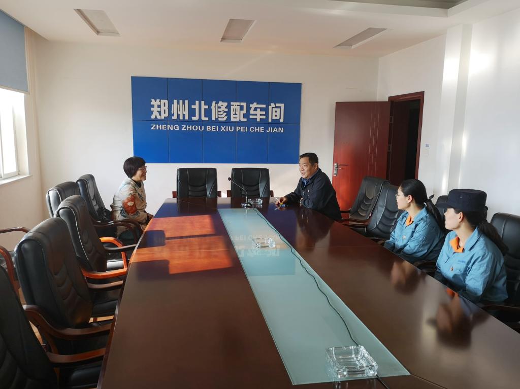 在郑州北车辆段修配车间会议室,和晋秦一行与修配车间党总支书记徐斌、王雅芸及同在修配车间工作的我院2011届毕业生党员李薇进行了座谈。徐斌在座谈中对我院的毕业生给予了高度肯定,王雅芸和李薇现都是修配车间的技术骨干,特别王雅芸今年还获得了“火车头奖章、全路技术能手称号”。和晋秦在座谈中详细了解了王雅芸在单位的优秀事迹,与贝博官网毕业生进行交流,还就铁路企业现在的用人标准、用人需求同徐斌做了沟通交流。