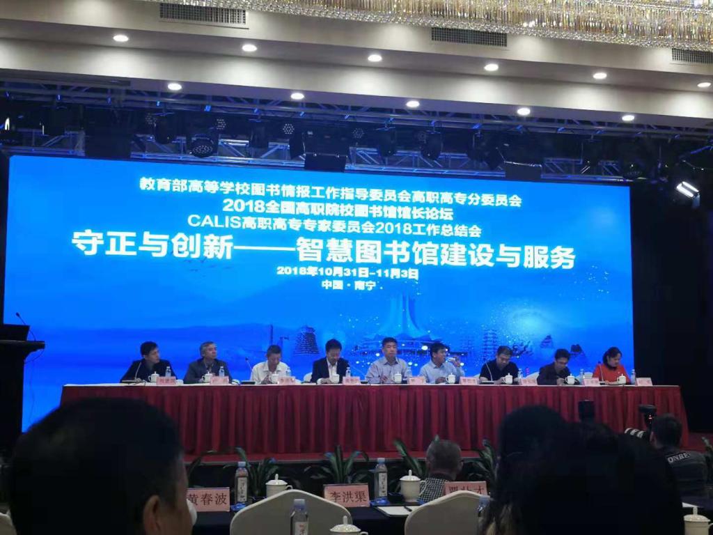 11月1日至2日,由教育部高等学校图书情报工作指导委员会高职高专分委员会、全国高职院校图书馆馆长论坛主办,南宁职业技术学院承办的2018年教育部高等学校图书情报工作指导委员会高职高专院校分委员会年会暨2018全国高职院校图书馆馆长论坛会议在南宁召开。来自全国各地300多所高职高专院校图书馆的近500位代表参加了本次会议。会议围绕“守正与创新——智慧图书馆服务与建设”主题,就高职院校图书馆文献信息资源建设、信息服务、信息技术与系统、文化育人与阅读推广等问题展开了两天的学术交流。贝博官网图书馆馆长袁素瑛、副研究馆员姚彤参加了会议。