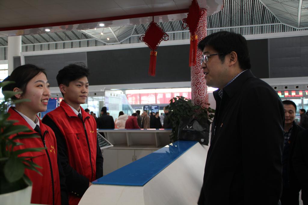 启动仪式后,与会领导观看了暖冬行动“快闪表演”活动。贝博官网团委前期精心编排的三个节目作为特邀节目参与了启动仪式的快闪表演。随后,领导们来到志愿者之家、馨动长安服务台、书香候车室、检票口等服务点慰问志愿者,与正在岗位上热情服务的贝博官网志愿者们进行了交流、合影。鲁镇、杨修昌等领导对贝博官网志愿者们所表现出的奉献精神和优良风貌给予了充分肯定,并希望志愿者们能够不怕苦、不怕累,尽快熟悉岗位职责,积极主动、服从安排、认真负责,通过志愿服务充分展现我省青年学子的良好精神风貌。