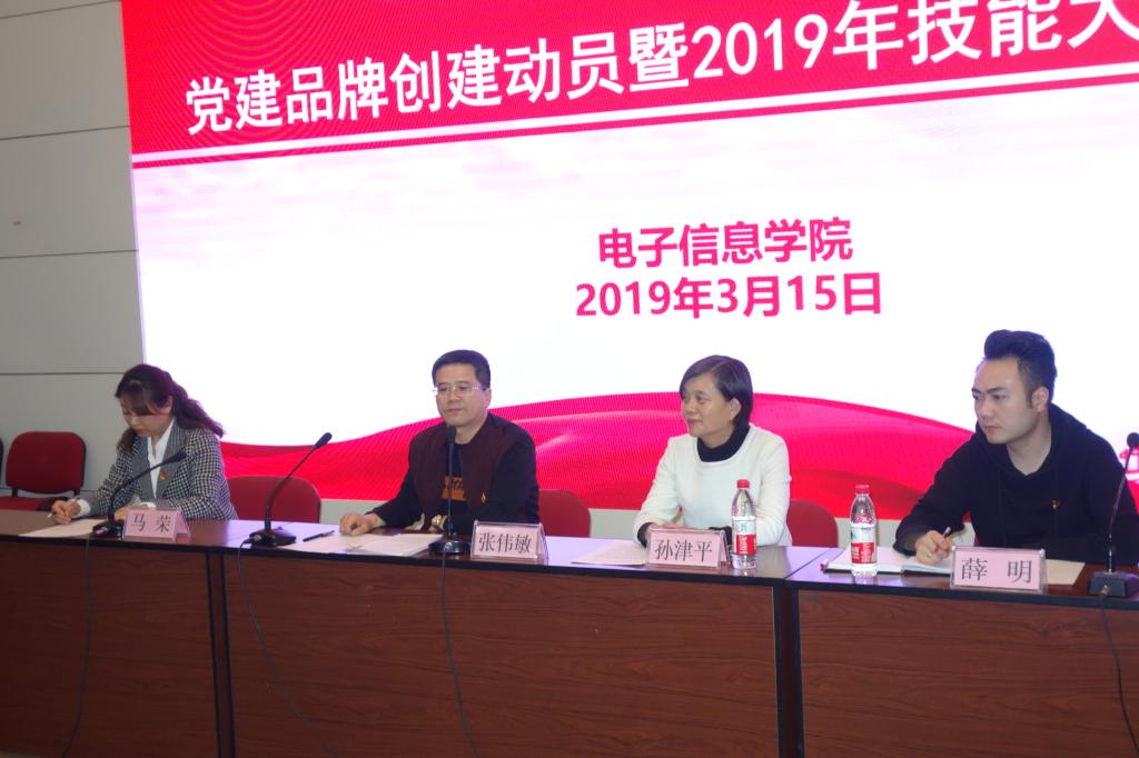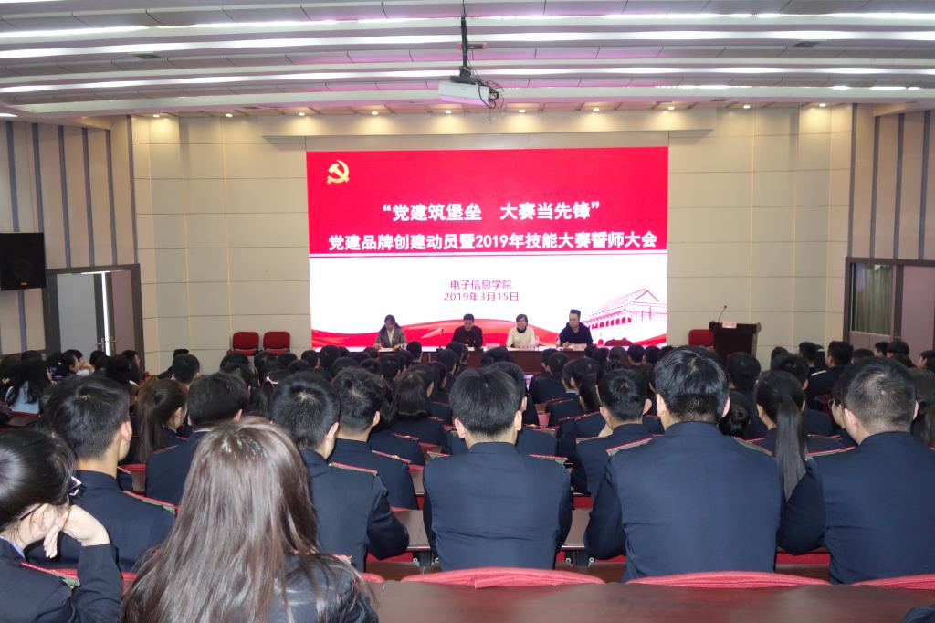 3月15日下午,电子信息学院在自强校区阶梯教室召开“党建筑堡垒,大赛当先锋”党建品牌创建动员暨2019年技能大赛誓师大会。全体教职工、参赛选手以及各班级学生代表参加大会。会议由院办主任马荣主持。