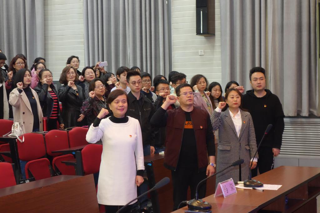 随后,教学第一党支部书记、总支委员、“双带头人”高玉老师带领全体共产党员、教职工和参赛选手一起宣誓。铿锵有力的誓言,带着决心和勇气去冲击今年的各项技能大赛,并取得更加辉煌的成绩。