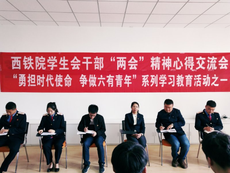 为引导青年大学生关心国家大政方针,加强对“两会”精神的关注和学习,贝博官网党委学生工作部于3月28日举行了西铁院学生干部“勇担时代使命 争做六有青年”系列学习教育活动之“两会精神学习交流会”。参加此次交流会的有党委学生工作部部长郭小莉、学生教育管理科副科长冯晓斌及院学生会50名学生干部代表。